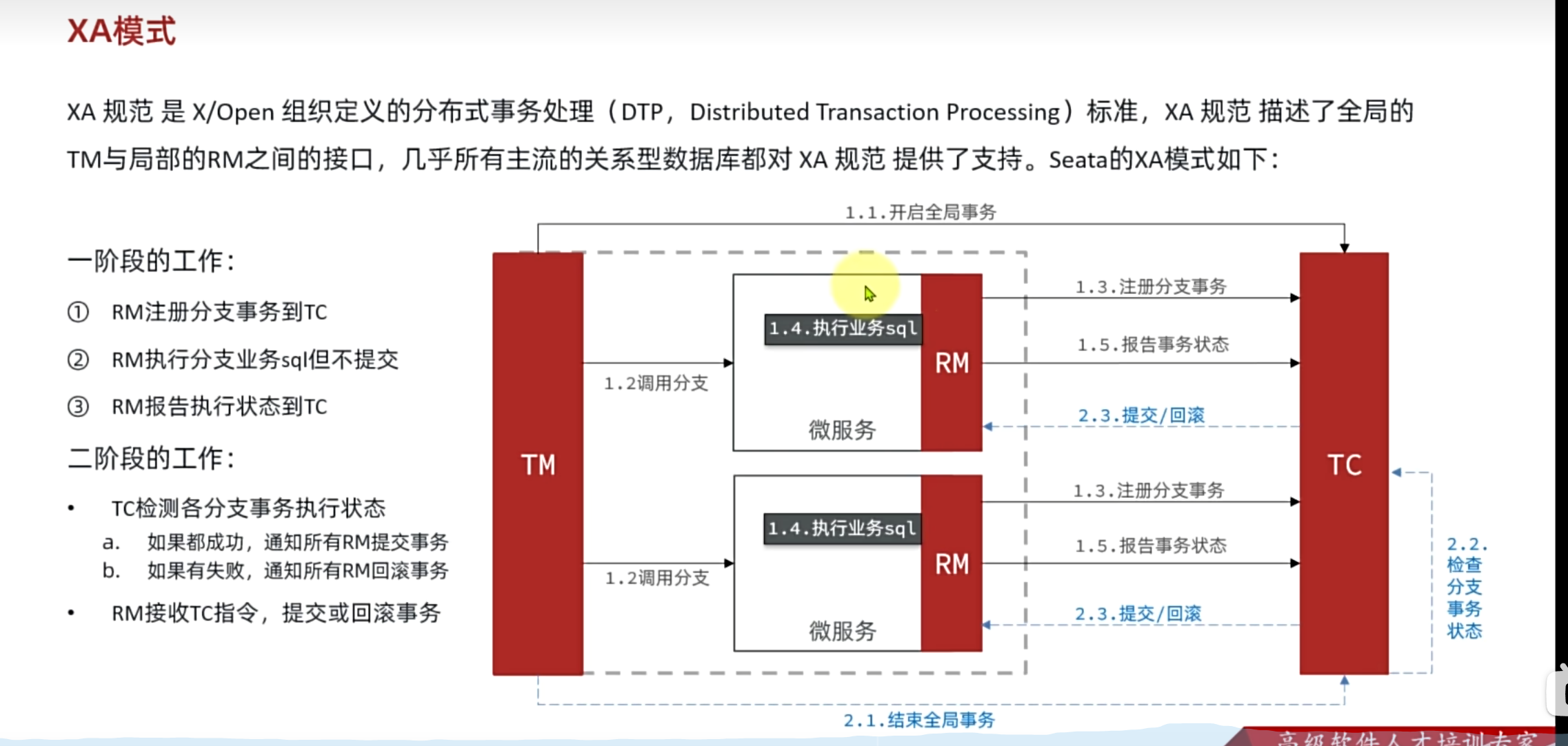 XA 规范 是 X/Open 组织定义的分布式事务处理(DTP,Distributed Transaction Processing)标准。Seata XA 模式是利用事务资源(数据库、消息服务等)对 XA 协议的支持,以 XA 协议的机制来管理分支事务的一种事务模式。